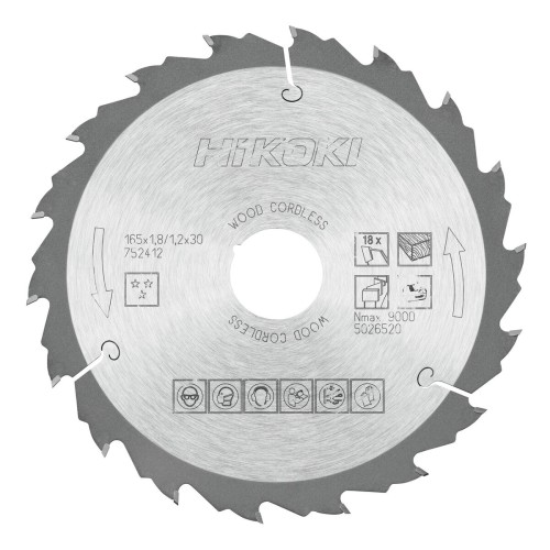 HIKOKI Hoja de sierra TCT madera 165x30/20 Z18 diente alterno / plano