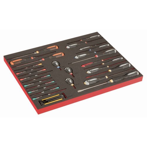 Destornilladores ERGO, destornilladores de precisión y llaves acodadas en bandeja de foam 3/3 Fit&Go con marcado láser (37 piezas)
