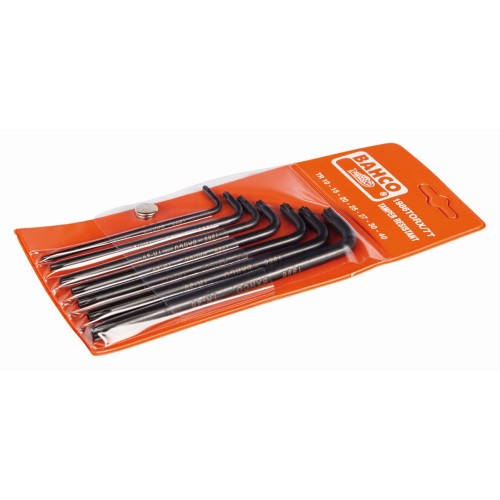 Juego de 7 llaves tipo allen hexagonales TORX® largas y fosfatadas, TR10-TR40